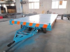 1.拖车底盘承载能力为2吨,底盘主梁12号型钢。上平台配14mm厚按装板。